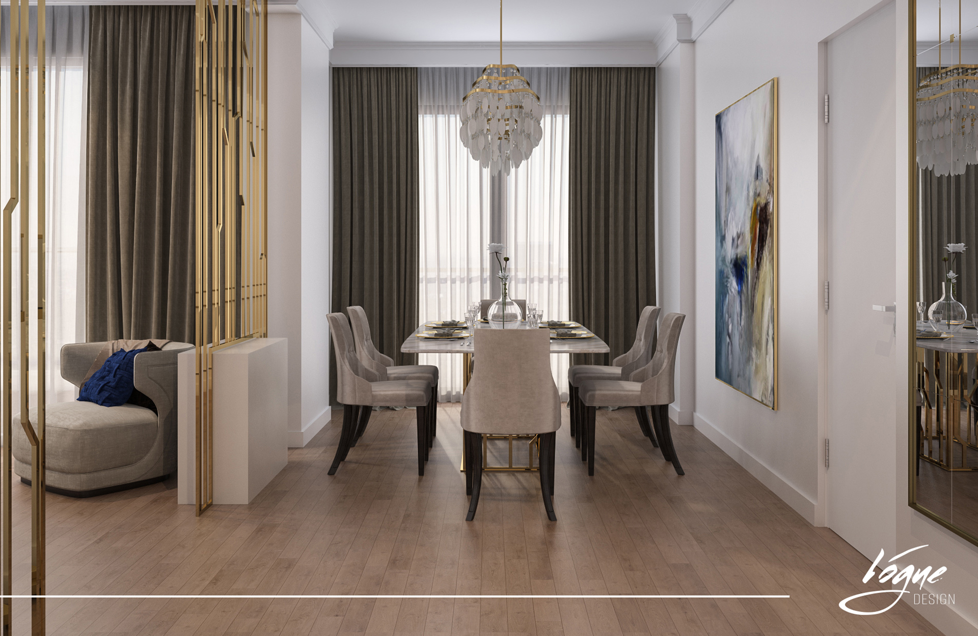 تقع الشقة في القسم الأوروبي من مدينة اسطنبول بمنطقة بيلك دوزو، وتبلغ مساحتها 290متر مربع حيث تتألف من مجلس رئيسي وخمس غرف نوم. قمنا في فوغ ديزاين بتصميم الشقة على الطراز الجامع بين المودرن والكونتبرري بألوان الذهبي والرخام الابيض ليعطي الشقة لمسة أناقة فريدة.